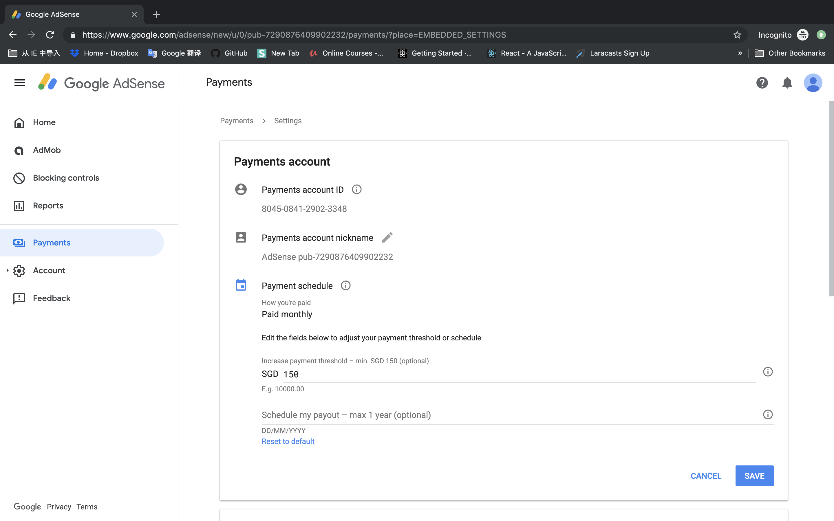 Pinterest To Adsense Google Adsense Payment Settings Change Payment Threshold