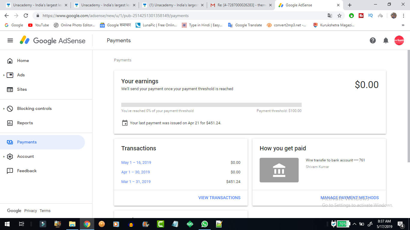 Adsense Payment Threshold Is Reached 100 Now What To Do Issue Resolved Hindi English Youtube