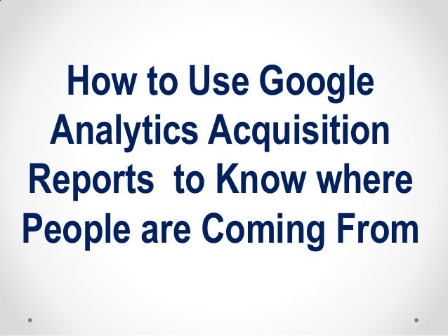 Google analytics acquisition reports. The acquisition section tells you where your visitors originated from such as search engines social networks or website referrals. What were the keywordssearch queries of acquired users. Specific reports are used to to learn more about your traffic if they arrive directly to your site or use a search engine and how successful certain marketing campaigns are in attracting users.