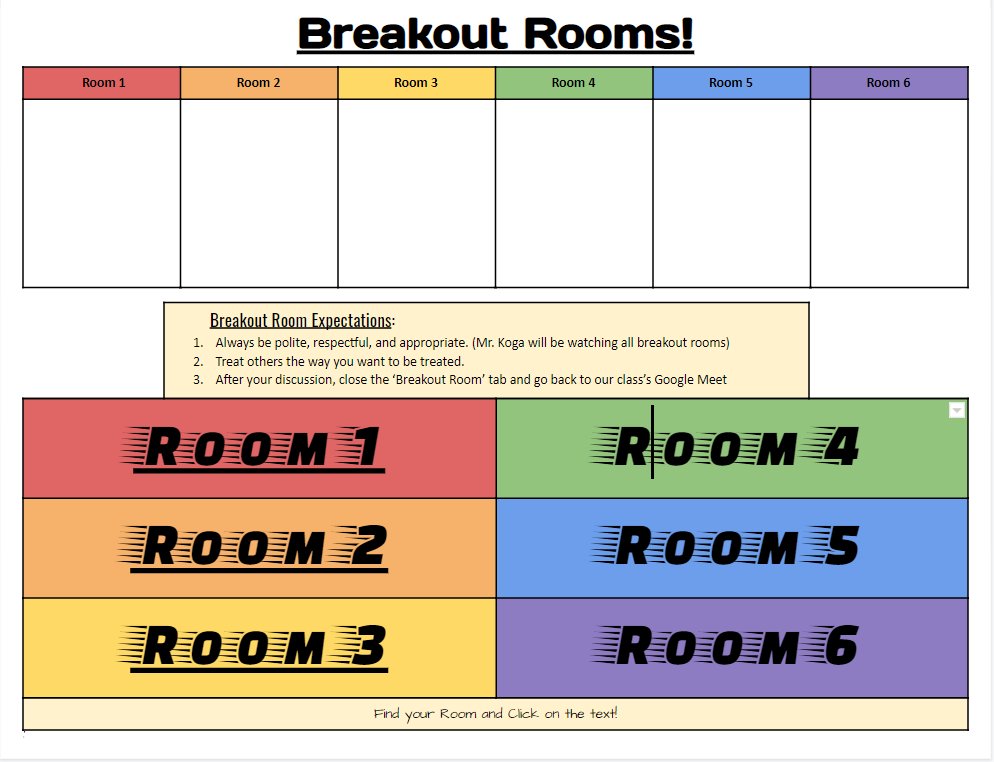 Google breakout room expectations. Breakout rooms allow the instructor to split the meeting room into several smaller rooms and assign students to those smaller rooms. Find local businesses view maps and get driving directions in google maps. Creating and managing breakout rooms.
