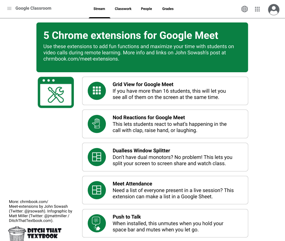 Matt Miller On Twitter Using Google Meet You Ll Want To Check Out These Extensions Grid View Nod Reactions Dualless Window Splitter Meet Attendance Push To Talk More