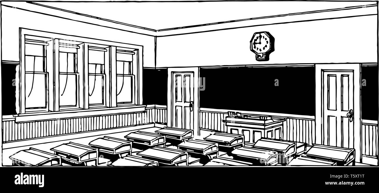 Classroom Filled With Desks Or School Building School Room Activities Vintage Line Drawing Or Engraving Illustration Stock Vector Image Art Alamy