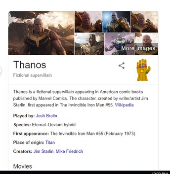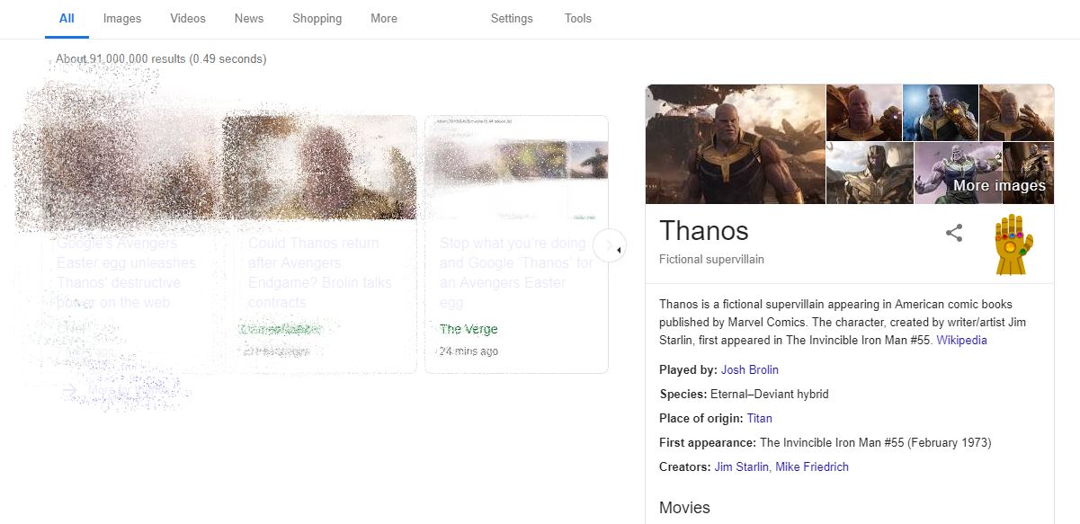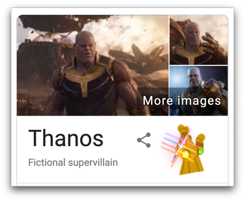Within the knowledge panel theres a small image of the infinity gauntlet and clicking this is key to activating the thanos easter egg. And if you tap that too youll get a special surpriseyou know those cool googly doodles that take over the google logo each day. P pbut unlike other search results a.