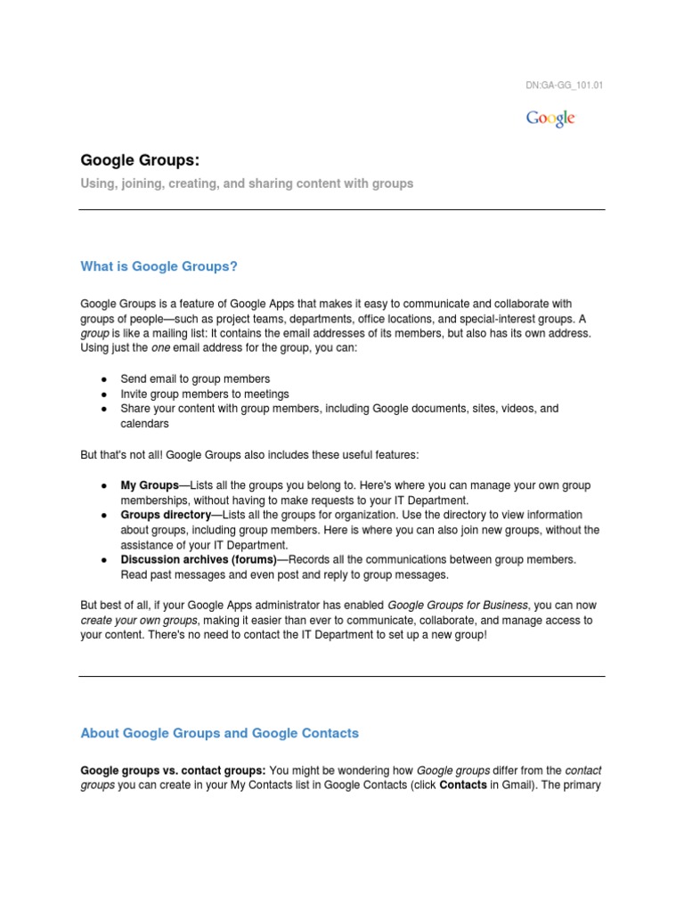 Google Groups What Is Google Groups About Google Groups And Google Contacts Using Joining Creating And Sharing Content With Groups Pdf Free Download