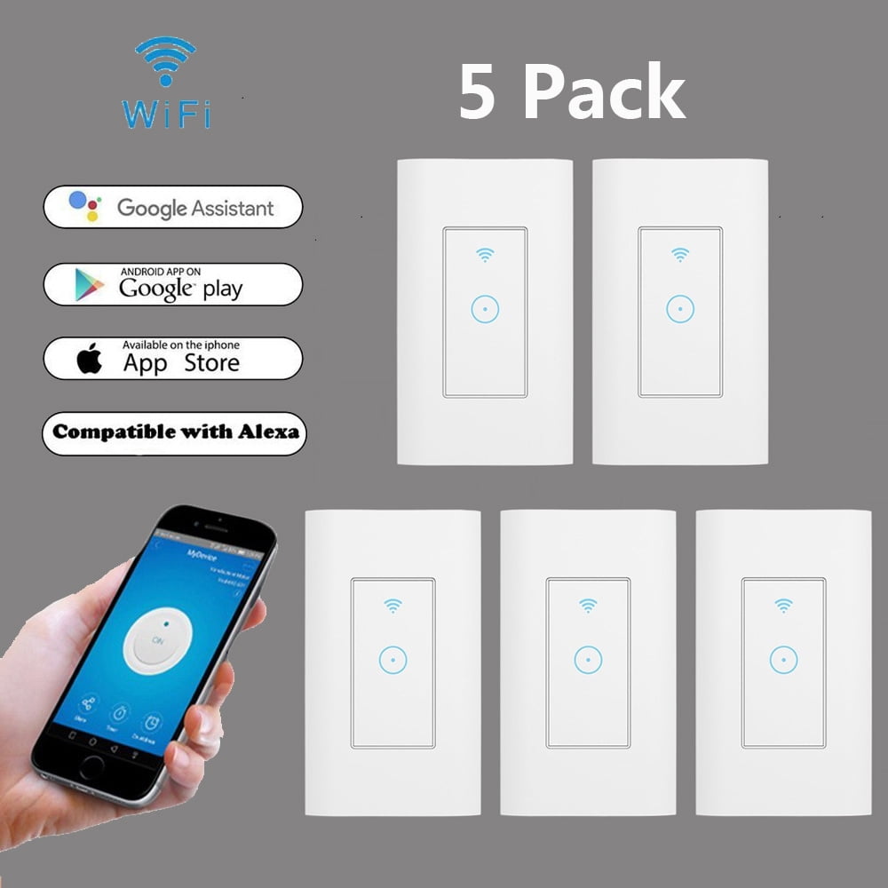 Pack Of 5 Smart Light Switch Smart Wifi Light Switch With Remote Control And Timer Works With Home Assistant And Ifttt No Hub Required Easy And Safe Installation Walmart Com Walmart Com