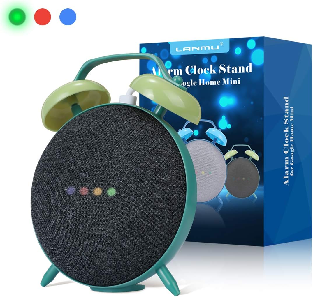 Amazon Com Lanmu Alarm Clock Stand For Google Home Mini And Nest Mini 2nd Gen Retro Alarm Clock Case Mount Accessories Green Furniture Decor