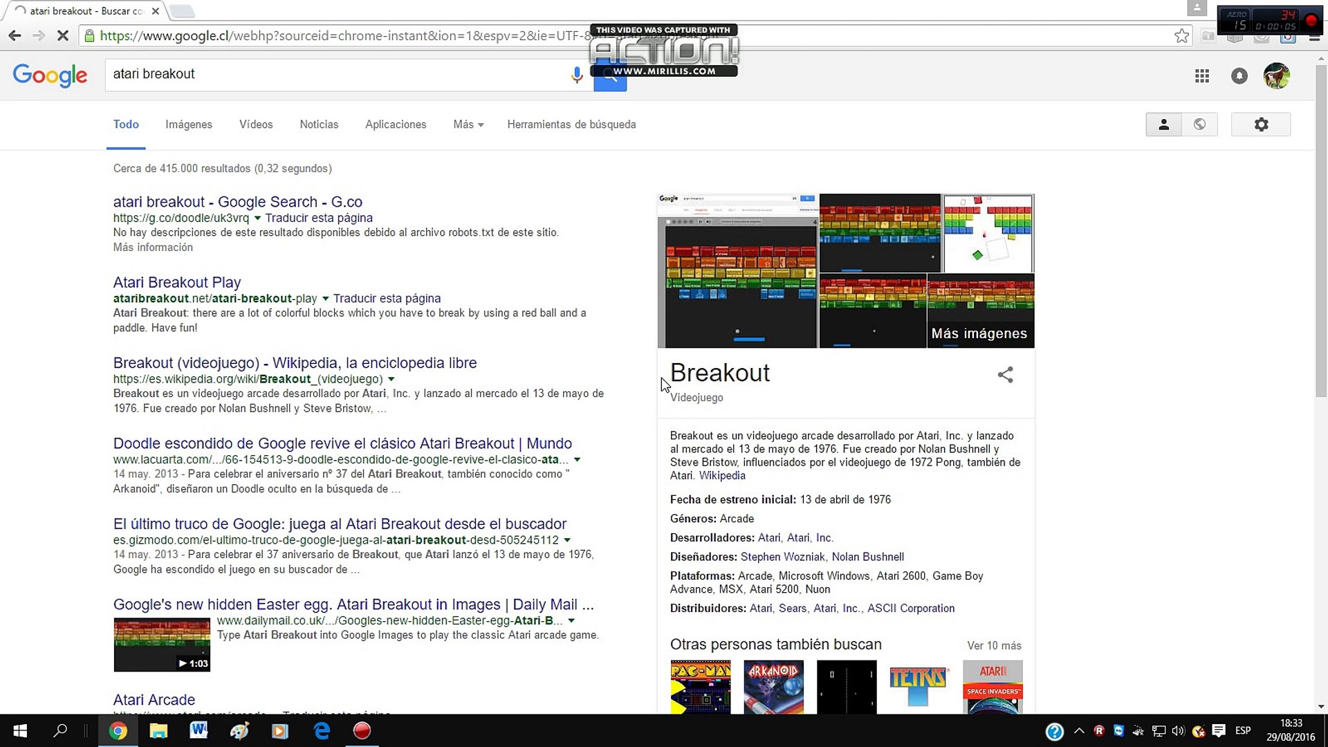 The most comprehensive image search on the web. Screen reader users click here to turn off google instant. Type in the words atari breakout and hit google search.