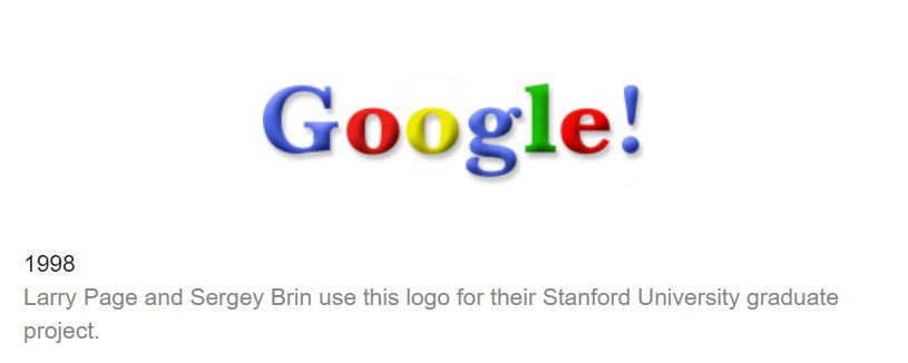 The history of googles logo. While the company began to take shape around 1997 growing out of a web crawler hilariously named backrub its gone through approximately 14 inceptions since then. The google logo appears in numerous settings to identify the search engine company.