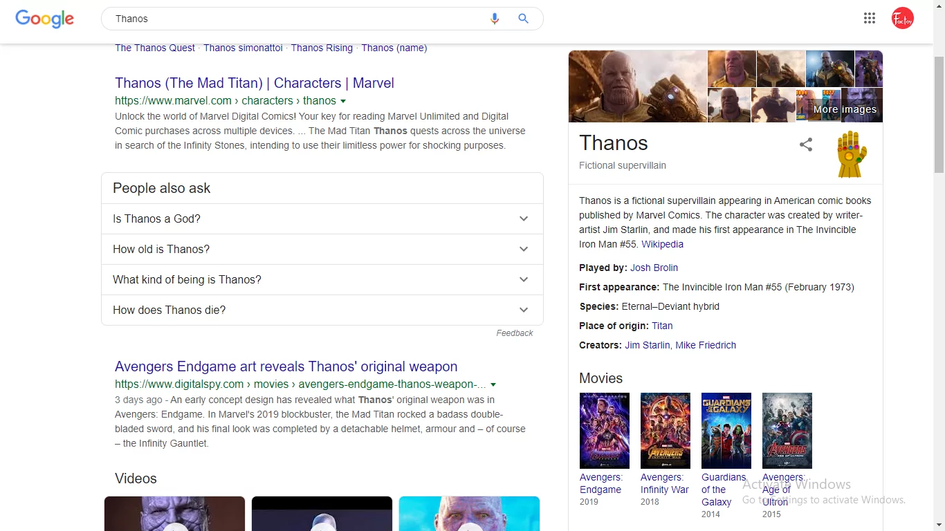 Watch Your Search Results Fade To Dust When You Google Thanos From The Marvel Cinematic Universe