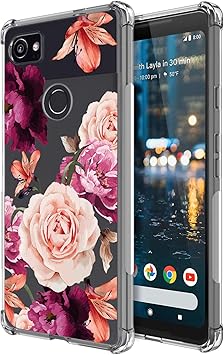 Amazon Com Kiomy Flowers Shockproof Phone Case For Google Pixel 2 Xl Clear Case With Floral Design Slim Flexible Cute Girly Cell Phone Cover With Bumper Corner For Girls Women Electronics