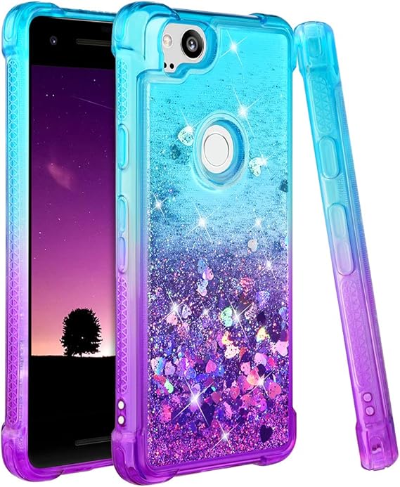 Amazon Com Ruky Google Pixel 2 Case Not Fit Pixel 2xl Gradient Quicksand Series Glitter Flowing Liquid Floating Soft Tpu Bumper Cushion Girls Women Phone Case For Google Pixel 2 Teal Purple Electronics