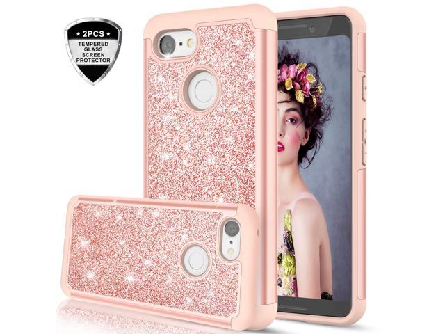 Amazon Com Google Pixel 3 Xl Case Glitter Bling Cute Women Girls Case Heavy Duty Hybrid Dual Layer Shockproof Full Body Protective Phone Case Cover With Screen Protector For Google Pixel 3 Xl Rose