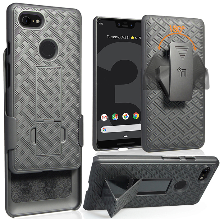 Google Pixel 3 Xl Case With Clip Nakedcellphone Black Kickstand Cover With Rotating Ratchet Belt Hip Holster Combo For Google Pixel 3 Xl Walmart Com Walmart Com