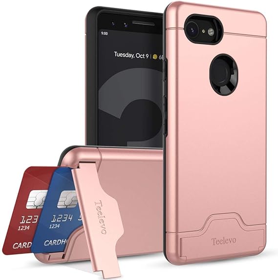 Amazon Com Teelevo Wallet Case For Google Pixel 3 Dual Layer Case With Card Slot Holder And Integrated Kickstand For Google Pixel 3 Rose Gold