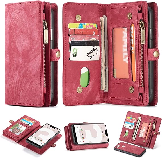 Amazon Com Google Pixel 3a Xl Leather Wallet Zipper Purse Detachable Card Slots Holder Flip Case Magnetic Wrist Strap Handle Shockproof Cover Pocket Wallet Handbag For Google Pixel 3a Xl Red Pixel 3a
