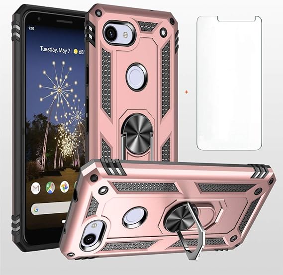 Amazon Com Google Pixel 3a Xl Case Pixel 3a Xl Phone Case With Hd Screen Protector Gritup 360 Degree Rotating Metal Ring Holder Kickstand Armor Anti Scratch Bracket Cover Case For Google Pixel 3a