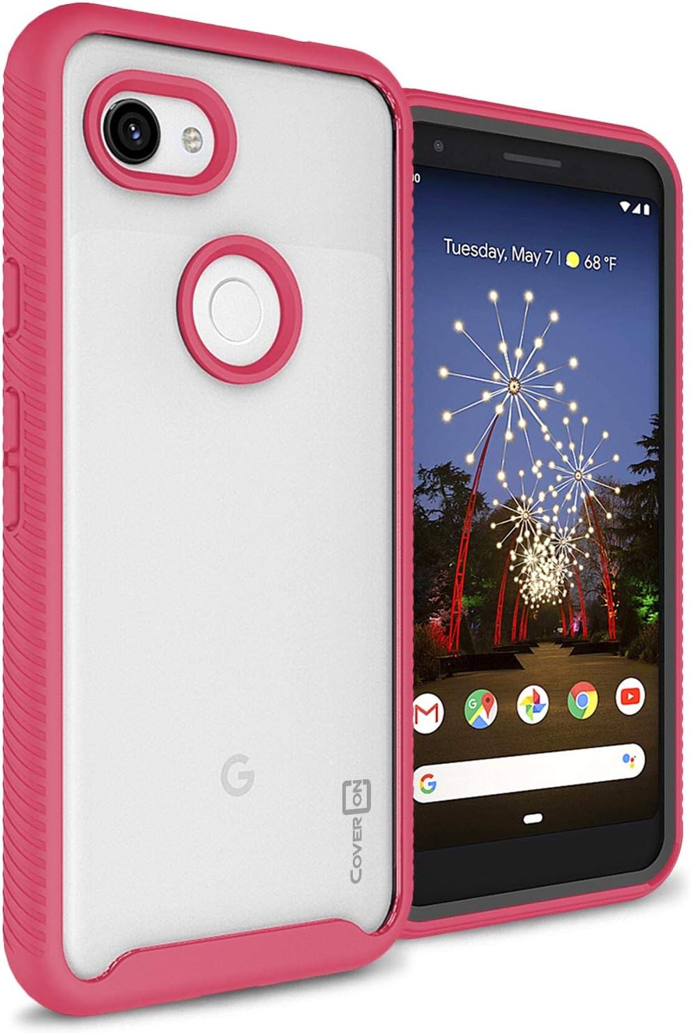 Amazon Com Coveron Heavy Duty Full Body Eos Series For Google Pixel 3a Xl Case 2019 Clear With Matted Pink Trim