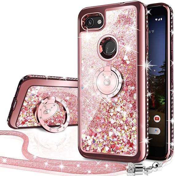 Amazon Com Silverback Google Pixel 3a Xl Case Moving Liquid Holographic Sparkle Glitter Case With Kickstand Bling Diamond Rhinestone Bumper W Ring Slim Google Pixel 3a Xl Case For Girls Women Rose Gold Electronics