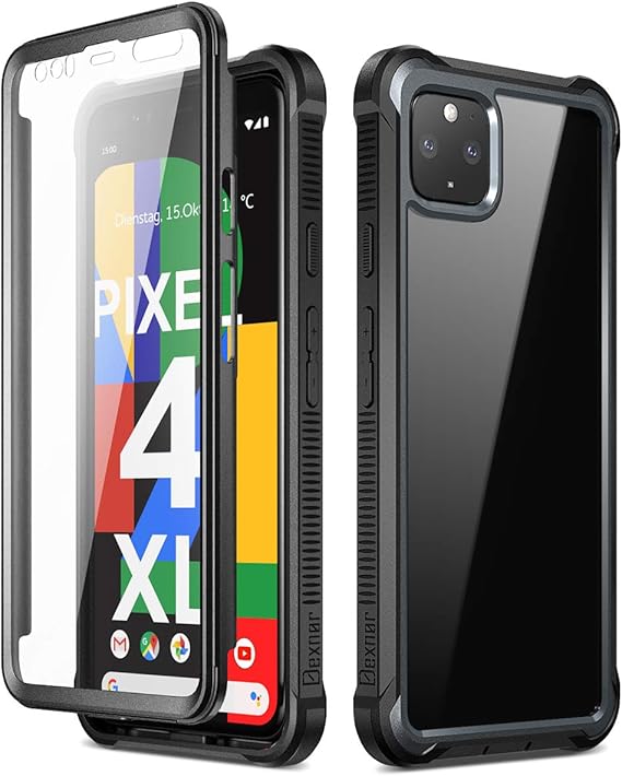 Amazon Com Dexnor Google Pixel 4 Xl Case With Screen Protector Clear Rugged Full Body Protective Shockproof Hard Back Defender Dual Layer Heavy Duty Bumper Cover Case For Google Pixel 4xl Black