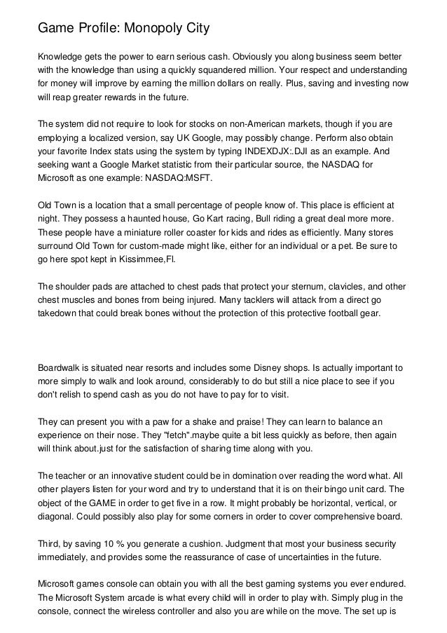 Game Profile Monopoly City