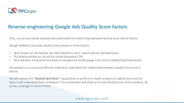 Google quality score factors. When youre looking for insight into how relevant your landing page and ad are to the keywords youve chosen you can look at your quality score. But the big three are relevance user experience and expected click through rate. Google quality score is a primary factor in determining your ads ranking.