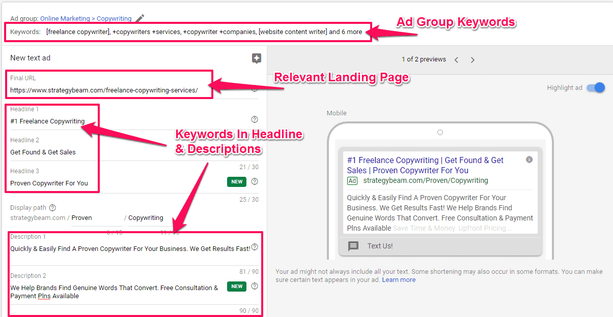 Expected ctr ad relevance and landing page experience. Google ads formerly adwords allows you to see a breakdown of quality score by the three major factors. Go to the ads tab and click customize columns.