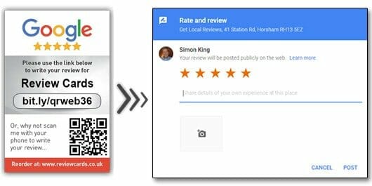 Reviewers must have a google plus account. It really is that easy. Simply hand one to every happy client and whether scanning the qr code or typing in the custom short link they can leave you a 5 star review on any device in seconds.