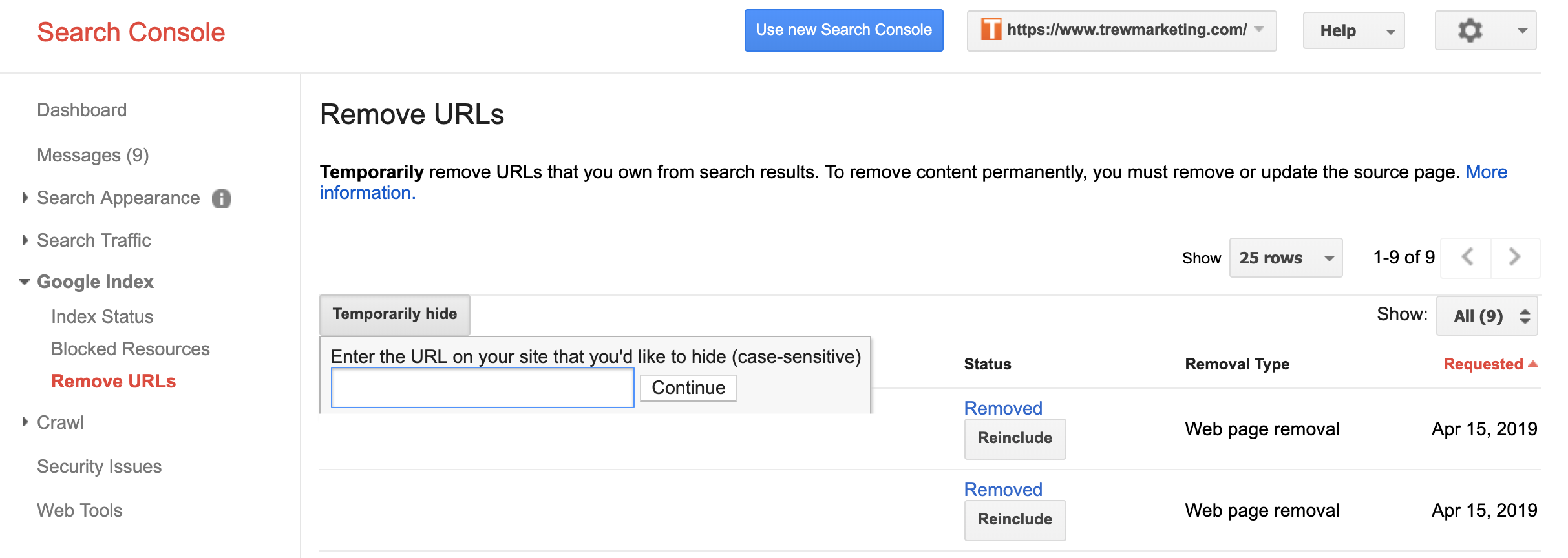 Google Search Console Deadlock Unable To Remove Url So I Can Index A Different Url Stack Overflow