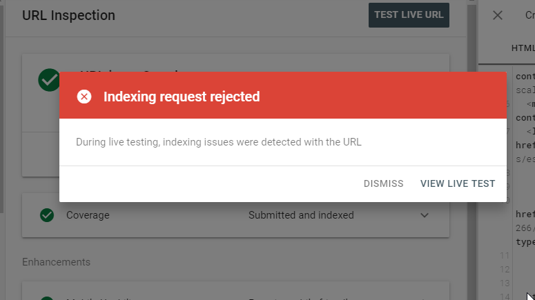See the current index status of a url.