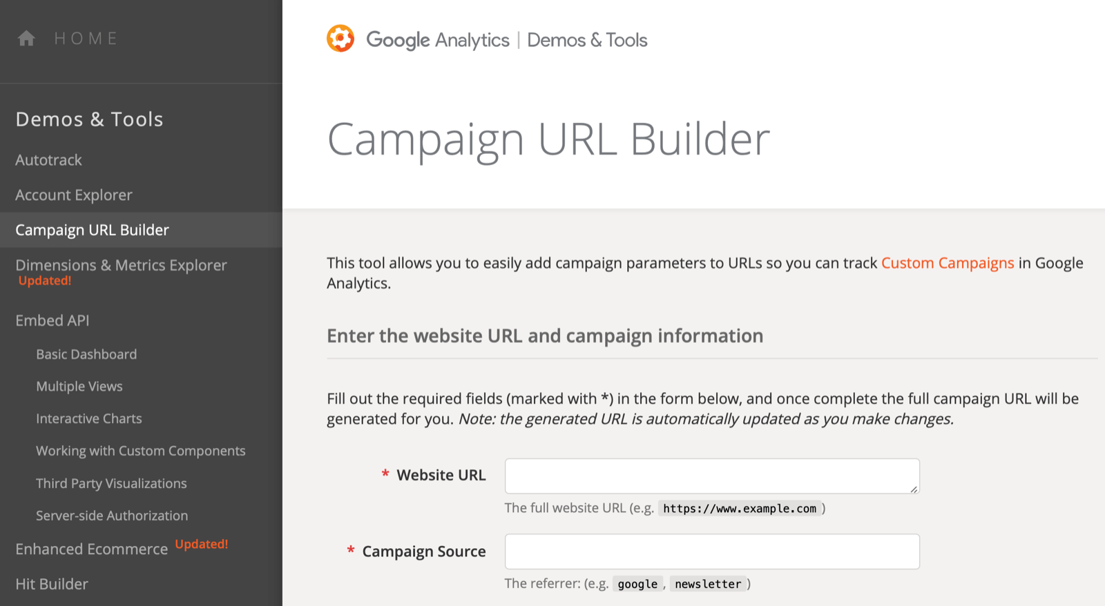 Google analytics url builder. Use utmsource to identify facebook ads as your source of traffic. Fill out the required fields marked with in the form below and once complete the full campaign url will be generated for you.
