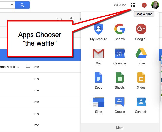 Grid google waffle icon. In the upper right select google apps. If you hover your mousepointer over the waffle for a second or two the words google apps will appear. Add apps that arent in the more menu.