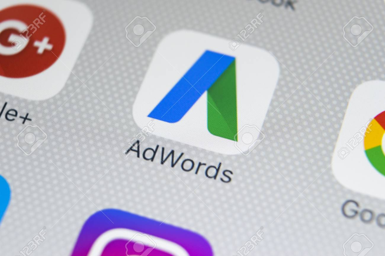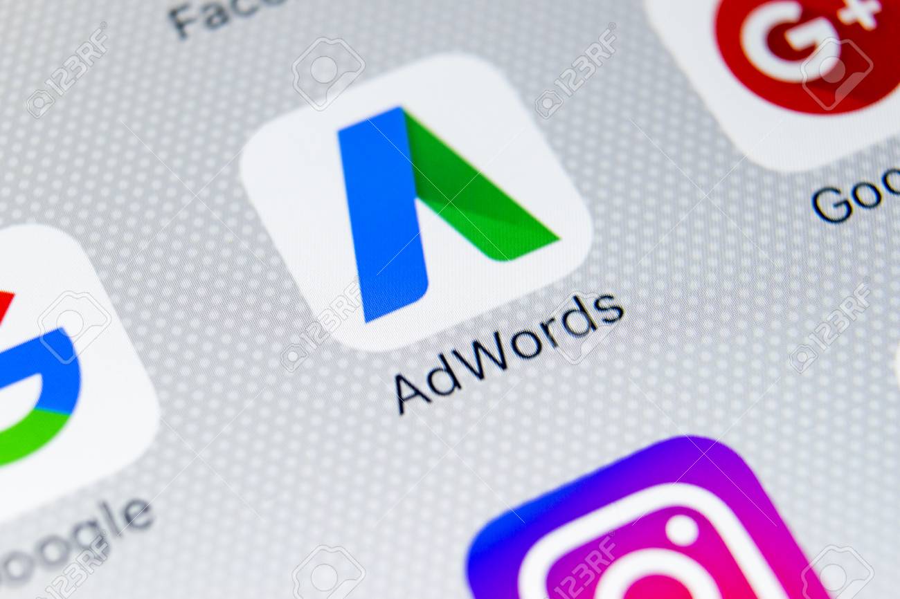 Sankt Petersburg Rusia 9 De Febrero De 2018 Icono De La Aplicacion Google Adwords En Primer Plano De La Pantalla Del Iphone X De Apple Icono De Google Ad Words Aplicacion De Google
